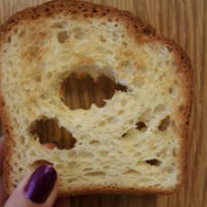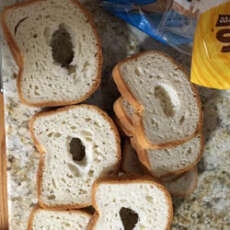 The good thing about the holes is now you can make a bird in the basket with a nice egg in the middle of the slice with out cutting