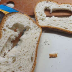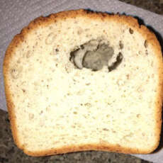 I have purchased several loaves of TJ’s GF bread that had huge holes in it. I learned to inspect each loaf before putting it in my cart because, despite the holes, it’s still the best stuff out there.